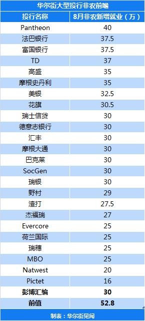 24 家大型投行发布的非农前瞻报告显示,继 7 月份就业井喷式增长后,8 月就业增长将进一步放缓,但投行之间的预期差距较大。