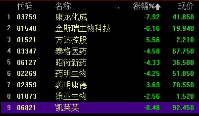康龙化成跌近 8%,金斯瑞生物科技跌超 6%,泰格医药、昭衍新药跌超 4%,药明康德跌超 3%、维亚生物跌超 2%。
