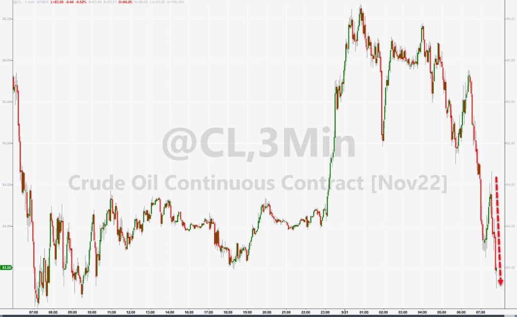 也在本周二,美国 WTI 10 月原油期货收跌约 1.5%,报 84.45 美元/桶,创 9 月 8 日上上周四以来收盘新低,较 6 月 8 日涨破 120 美元所创的三个月来高位跌去近 31%。