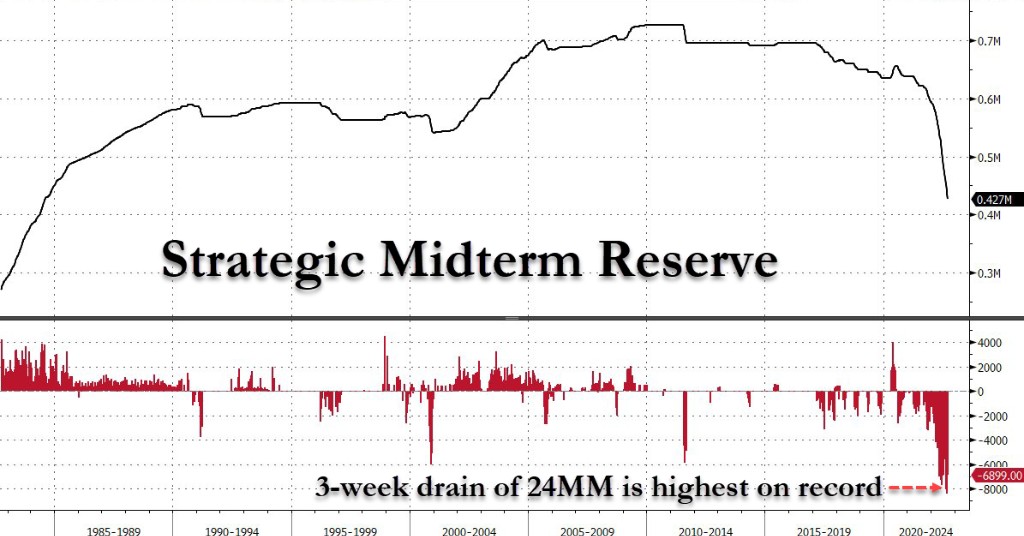 而上周美国战略原油库存减少 689.9 万桶至 42715.8 万桶,跌至 1984 年 8 月 10 日当周以来的最低水平。截至上周的三周内,战略石油储备合计减少约 2400 万桶,达到创纪录的三周下降水平。