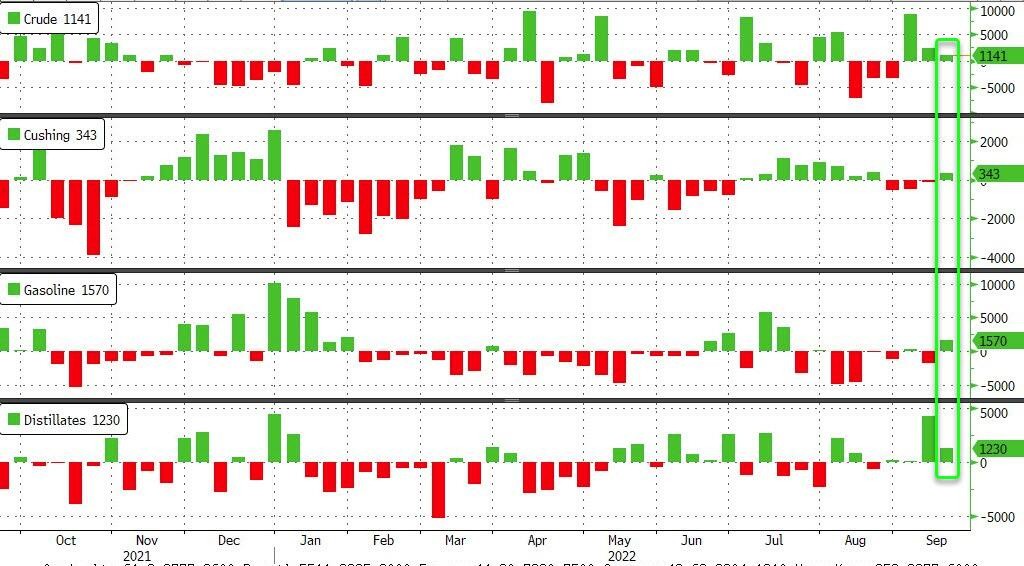 本周三,美油曾在普京发表全国讲话进行动员令地缘政治局势更加紧张后盘中上涨,刷新日高时日内涨逾 2.6%,但美股早盘转跌。美股盘中,美国能源部下属能源信息署(EIA)公布上周石油库存增加后刷新日低,日内一度跌 2.2%。