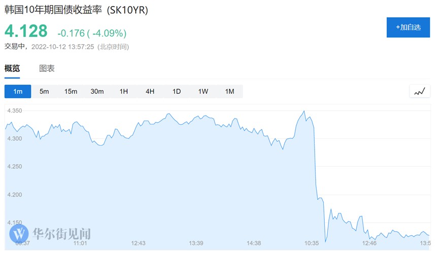 在韩国央行利率决议出炉后,韩元兑美元汇率短线一度走高 8 韩元,日内跌幅达 1.5%,韩国 10 年期国债收益率一度下行 20 个基点,目前在 4.13% 附近运行。