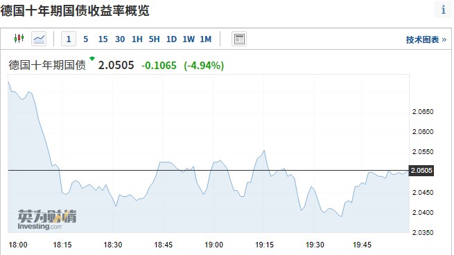 德国国债持续走高,德国 10 年期国债收益率一度降至 2.04%。