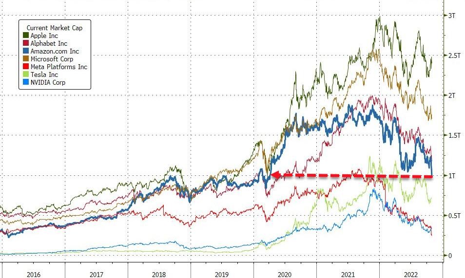 这也是亚马逊自 2020 年 4 月以来市值首次低于 1 万亿。今年以来,亚马逊下跌了 42%,接近 2008 年最糟糕时的 45% 跌幅。