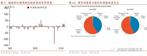 此外,越南的货币当局和监管机构随即加紧了针对市场透明度和债券资质降低方面的风险控制。今年一季度企业债券新发行中有半数为房地产部门,约 15.6 万亿越南盾。但在 3 月份,越南证监会取消了 2021 年 7 月至 2022 年 3 月期间发行的 Tan Hoang Minh Goupd 的 9 项债券发行,价值约 10 万亿越南盾,主因考虑到其所涉及的虚假信息等披露合规问题。10 月份房地产集团 Van Thinh Phat Holdings Group 事件即是在此背景下出现的风险暴露,导致其后几周外国机构投资者股权净流出,10 月 28 日峰值达到-1.37 亿美金,11 月中已然恢复流入或表明该风险尚未蔓延。