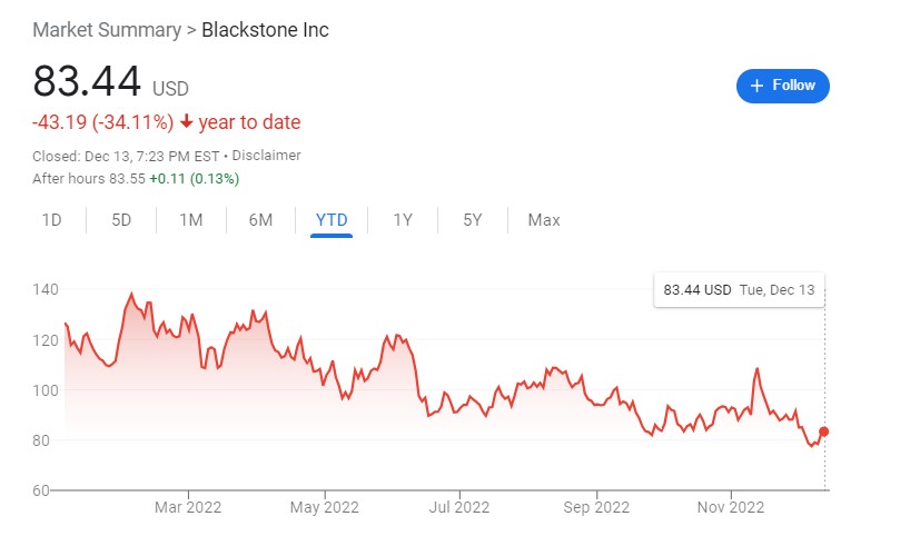 11 月以来,黑石股价加速下跌,今年迄今跌 34%。
