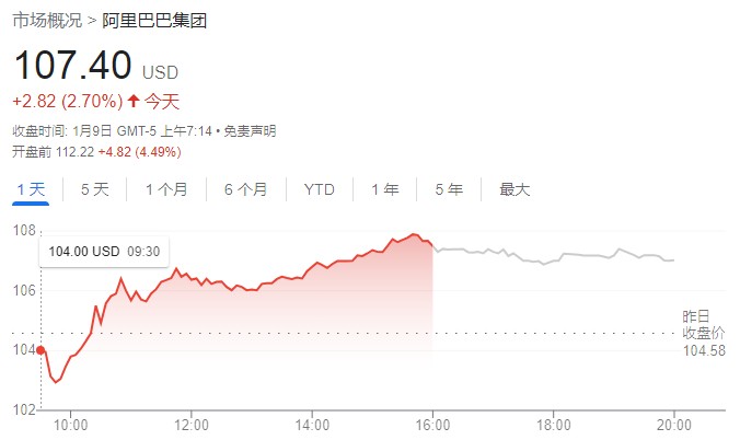 阿里巴巴美股盘前涨超 4%,此前阿里港股大涨 8.7%,消息称联合创始人马云将放弃蚂蚁集团控制权。