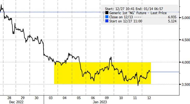 美东时间 1 月 12 日周四美股早盘时段,NYMEX 2 月天然气期货刷新日高至 3.946 美元,日内涨幅接近 7.5%,午盘回吐多数涨幅,仍有望连续第二日收涨,继续脱离周二所创的 2021 年 12 月末以来收盘低位。