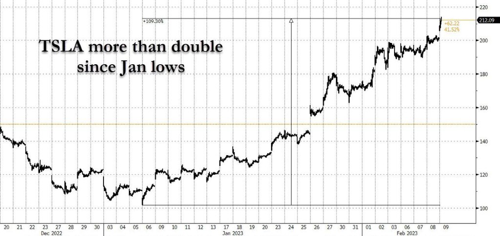 另一方面,投资者对经济的乐观情绪恢复,以及押注美联储激进加息周期即将结束,使得特斯拉成为今年以来最热门的股票之一。