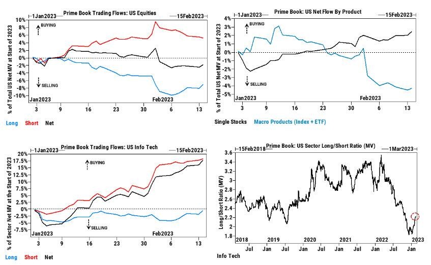高盛发现,2 月 2 日美联储会议次日,空头回补创 2015 年 11 月以来最大规模;到本周三,对冲基金已连续 11 个交易日净买入 IT 板块,周二的净买入规模为一个月来最大。