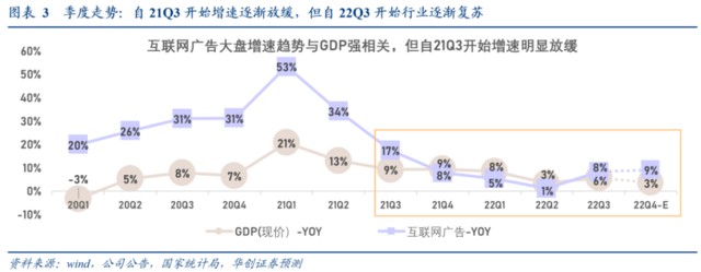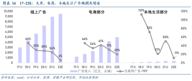 本部分我们对各个行业过去几年广告收入的增速变化进行详细复盘,主要想回答的问题是:不同行业在过去几年的增速如何变化?变化背后的核心驱动因素是什么?