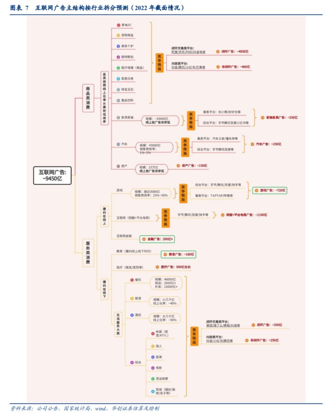图 7 在前文的基础上做了更详细的拆解,以更详细地拼出一份互联网广告的全景图。关于不同行业和不同公司时间序列维度的复盘和分析,我们会分别在 “行业篇” 和 “公司篇” 进行更详细的展开。