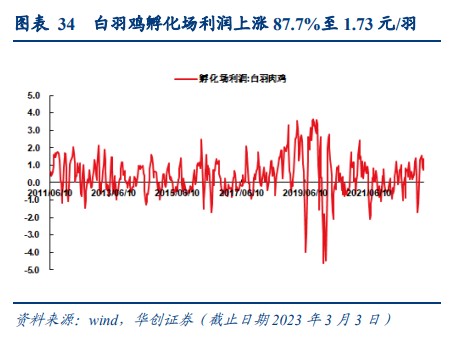 毛鸡需求受消费复苏叠加屠宰复工拉动,本周毛鸡价格为 5.17 元/斤,环比小幅上升,单羽养殖利润接近 3 元。华创证券认为,当前父母代鸡苗报价维持高位,随着上游祖代产能缺口传导至父母代,父母代鸡苗实际成交价格有望逐步上行。
