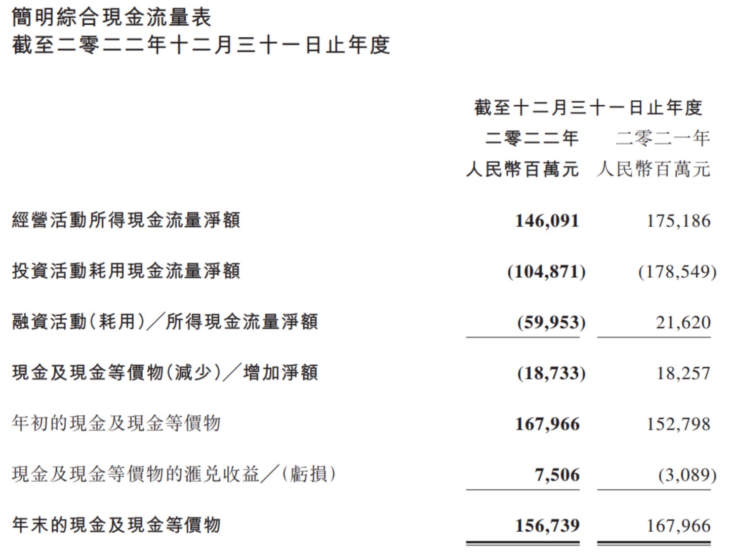 2022 年,腾讯经营活动所得现金流量净额为 1461 亿元,同比下滑 16.7%,还不如 2019 年 1486 亿元。