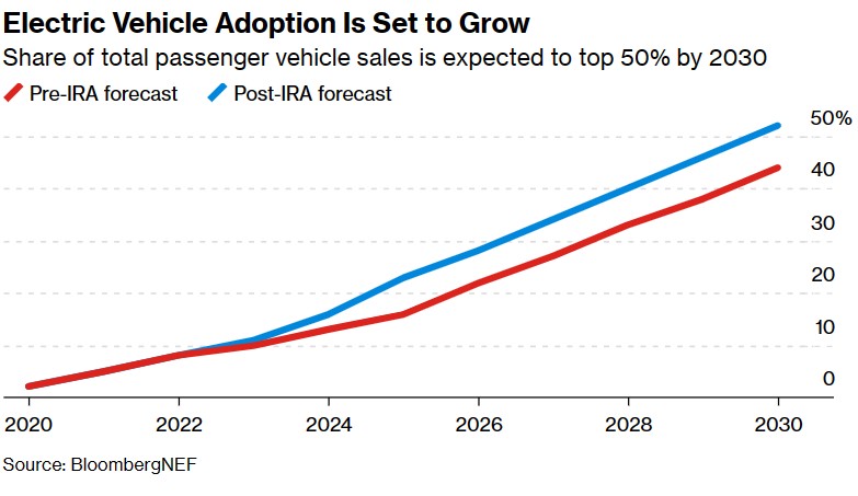 电动汽车的使用将会增长——预计到 2030 年,美国电动乘用车总销量代表的份额预计将超过 50%