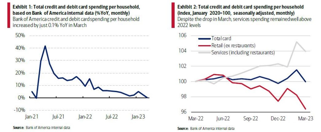美国银行的数据也显示,美国信用卡和借记卡支出放缓至两年来最低速度。