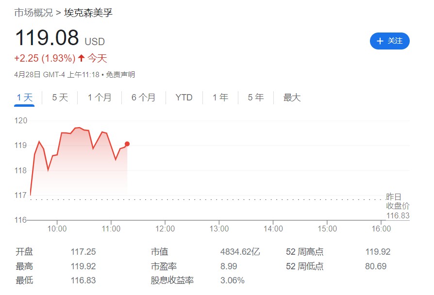 4 月 28 日周五美股盘前,美国两大油气巨头埃克森美孚和雪佛龙公布今年一季度业绩。