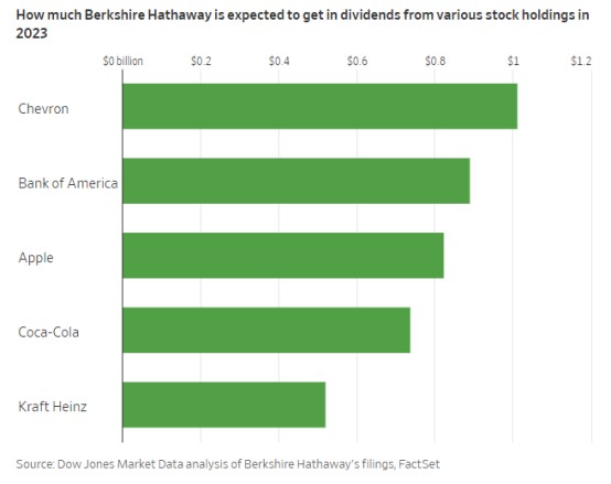 其中近五分之一将来自伯克希尔最大持股之一的雪佛龙,雪佛龙已连续 36 年增加派息。