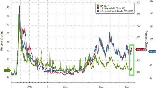结合近期卷土重来的银行业风暴,这是否表明,投资者正在押注,信贷风险将会蔓延至股市?