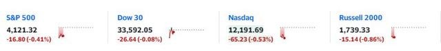 开盘一小时,道指短暂转涨后再度转跌,纳指跌 0.5% 与罗素 2000 小盘股跌 0.8% 均领跌主要指数。