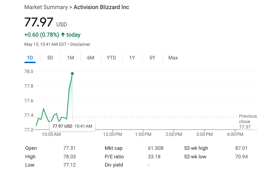 欧盟监管机构的批准对微软来说是一个巨大的胜利。消息出来后,动视暴雪的股价盘中拉涨约 1%,微软股价也小幅上涨。
