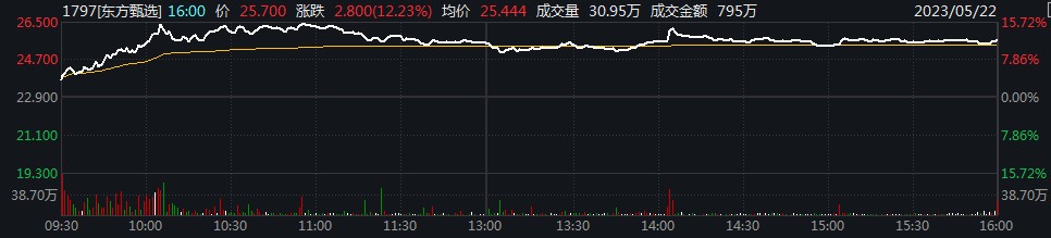 在线教育早盘拉升,东方甄选收涨 12.23%。消息面上,抖音 4 月主播带货榜公布,公司排名第一。