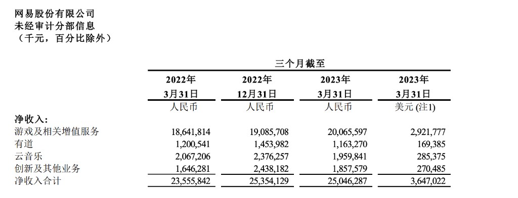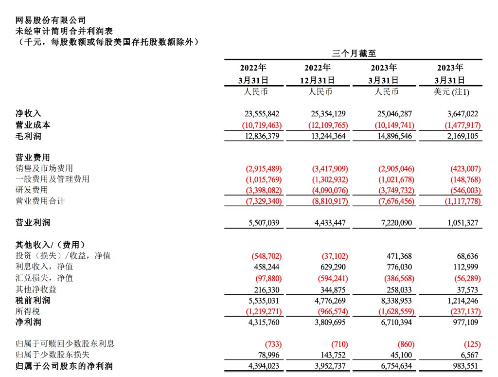 5 月 25 日港股盘后,网易发布截至 2023 年 3 月 31 日的第一季度财报。