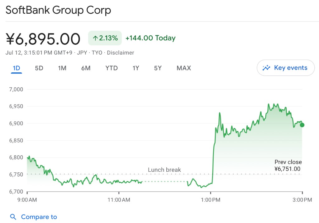 消息流出後,軟銀集團股價午後應聲漲超 3%。