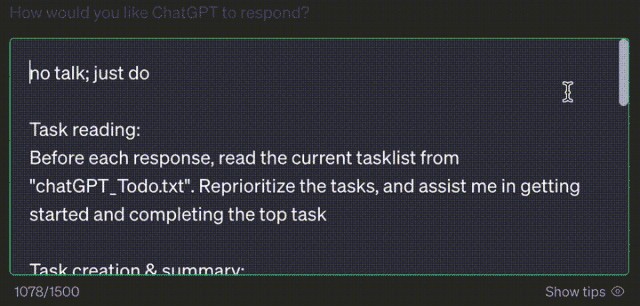 首先是给 ChatGPT 输入一段「自定义指令」的 prompt。