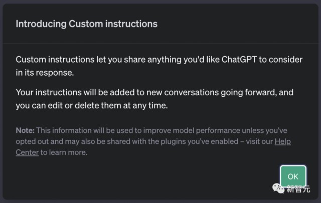有了 “自定义指令” 新功能,人人都可以打造一个独一无二的回复,能够很好控制 ChatGPT 响应方式、偏好等。