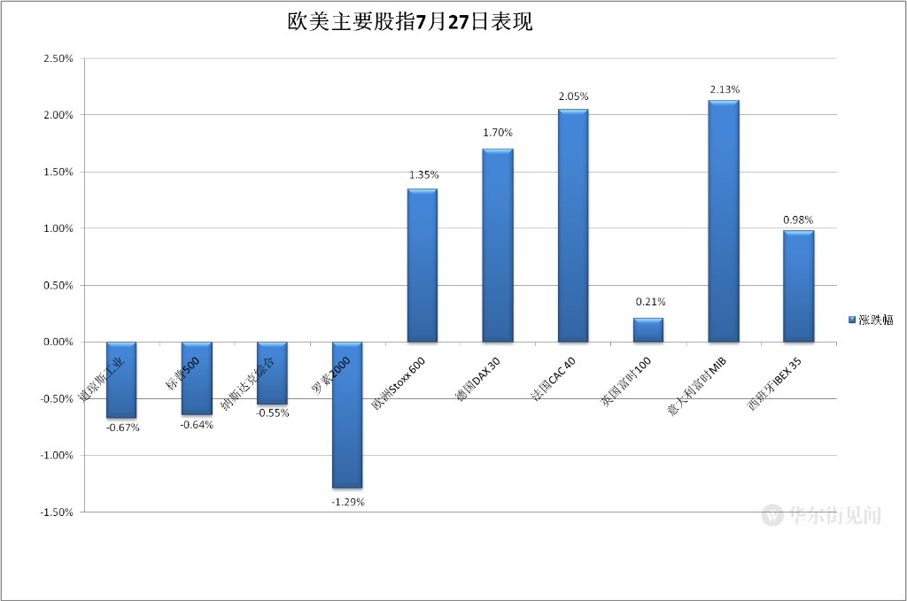 个股中,周三跌超 5% 的欧洲最高市值上市公司 LVMH 反弹,涨超 3.7%,周二欧股盘后公布的二季报引发投资者指引整个奢侈品行业高增长的前景,周三 LVMH 创将近 17 个月最大日跌幅;而下调今年交付量指引的德国大众跌超 2%。