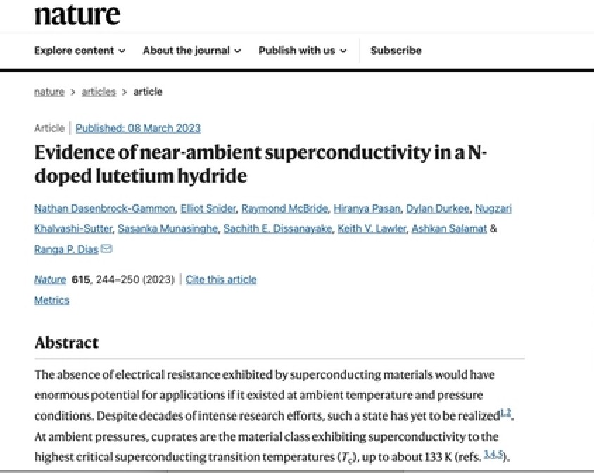 今年 3 月,美国罗切斯特大学的迪亚斯团队宣称发现了室温超导,但不久后就被多个实验团队发表声明质疑,该文章也在质疑声中被撤稿。