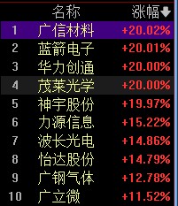 永和智控 2 连板,广信材料、天迈科技涨停,英诺激光、爱旭股份、蓝箭电子高开高走。