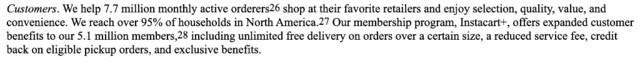 Instacart 在招股书中指出,Instacart+ 会员订单相较普通用户更加频繁,平均订单价值更高,并有利于形成用户黏性,将继续加码 Instacart+。