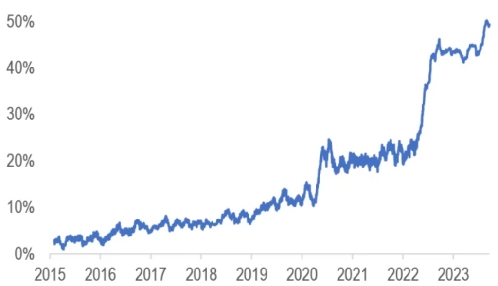 据摩根大通称,零日期权交易量不断创下历史新高,并且最近已占所有标普 500 指数期权交易量的一半。