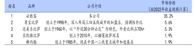 从国内披萨品牌地位看,达美乐在20 家城市拥有 700 家门店,是国内增长最快的披萨公司,按2022 年收益规模计算,达美乐位列第三。