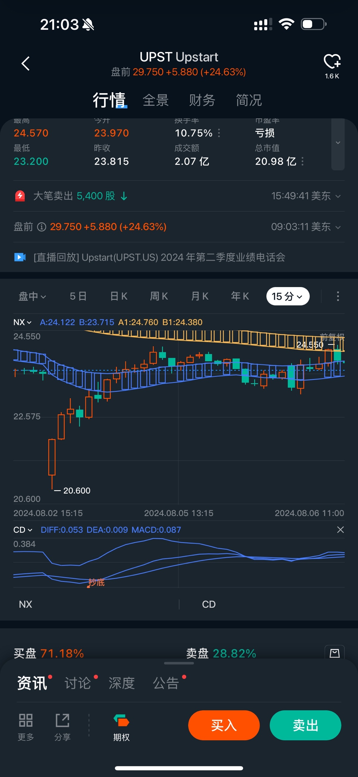In my analysis video the day before yesterday, I told everyone to hold on. Many stocks' CD indicators suggested buying the dip, especially $Upstart(UPST.US) UPST. After breaking the blue ladder earlier, it's time to buy back: