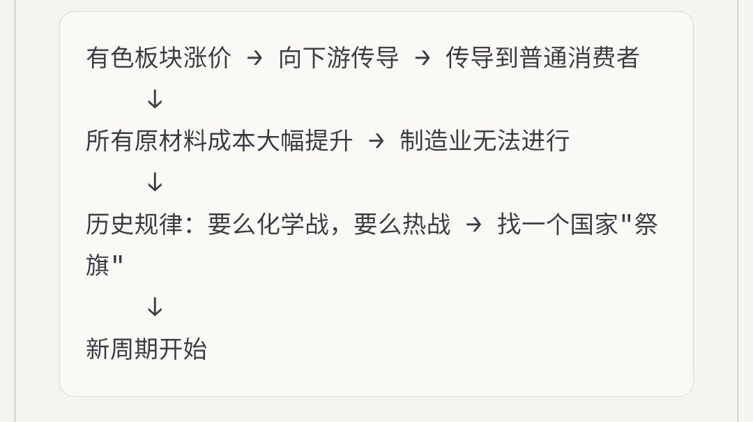 - 2025 年 6 月在长桥提出"决战元素周期表",并列了一堆有色金属和个股