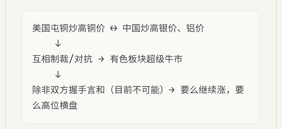 - ⚙️ 有色金属:铜铝银锂稀土等"掀桌子概念股"