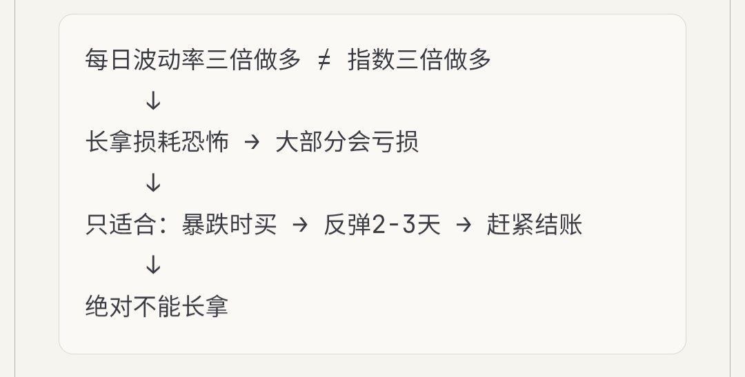 | 杠杆 ETF 长拿(如 YINN) | 损耗恐怖 |