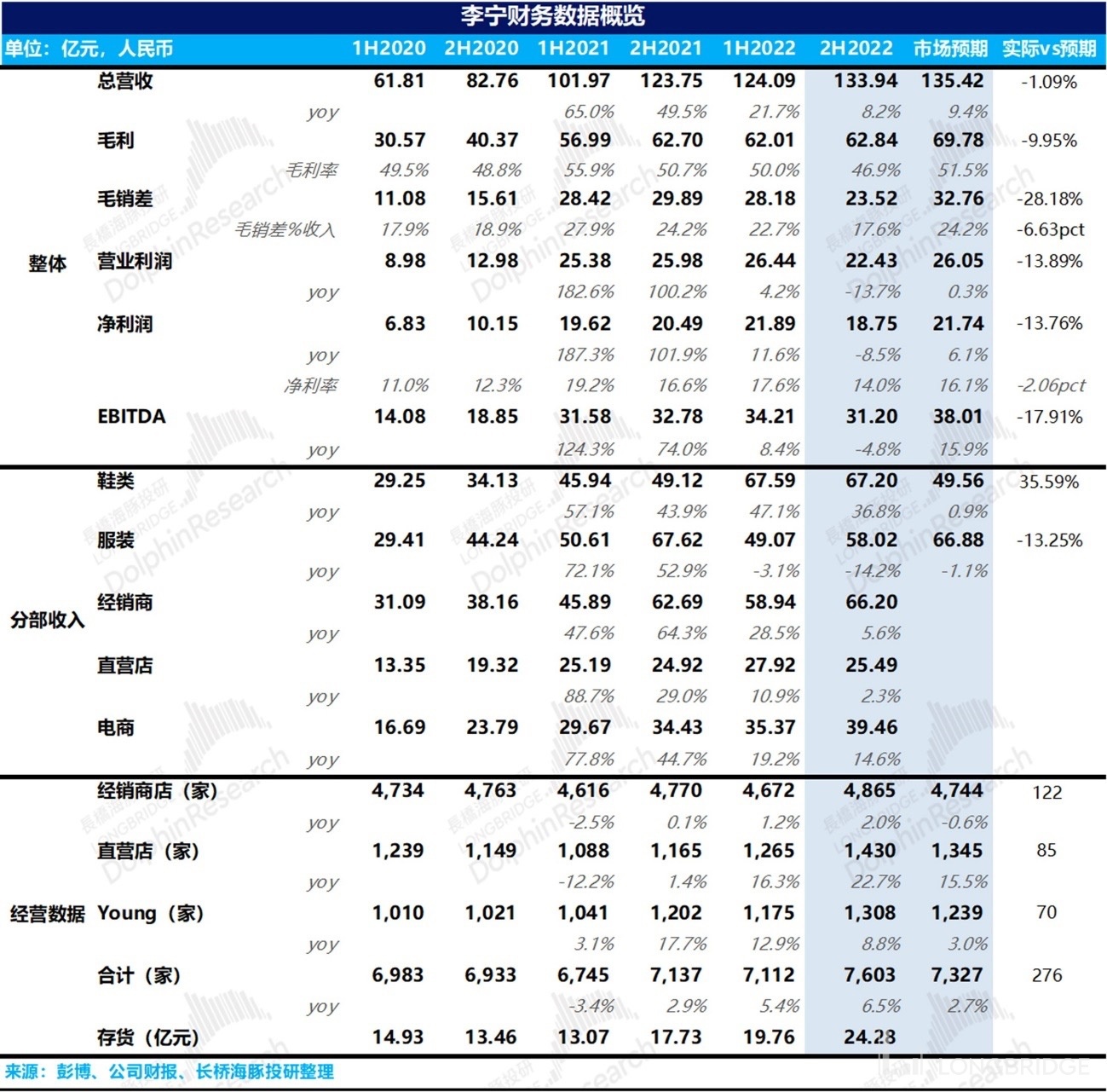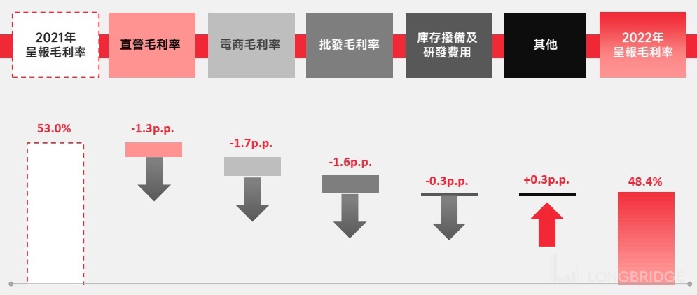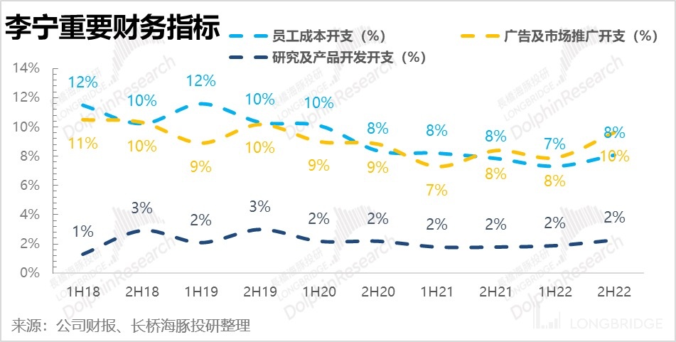 On the one hand, due to the rise in costs and increased discounts (which have a greater impact), the gross profit margin fell by 3.8 percentage points in the second half of the year (a decrease of 4.6 percentage points for the whole year, and the negative impact is even greater offline), and on the other hand, the increase in marketing promotion led to the increase in the sales expense ratio in the second half of the year. In total, the gross sales difference was 6 percentage points lower than market expectations, which was far below expectations. I thought it was difficult to sell goods in the second half of the year, but I didn't expect it to be so difficult.