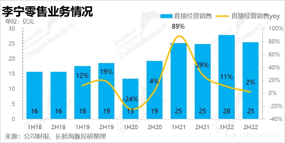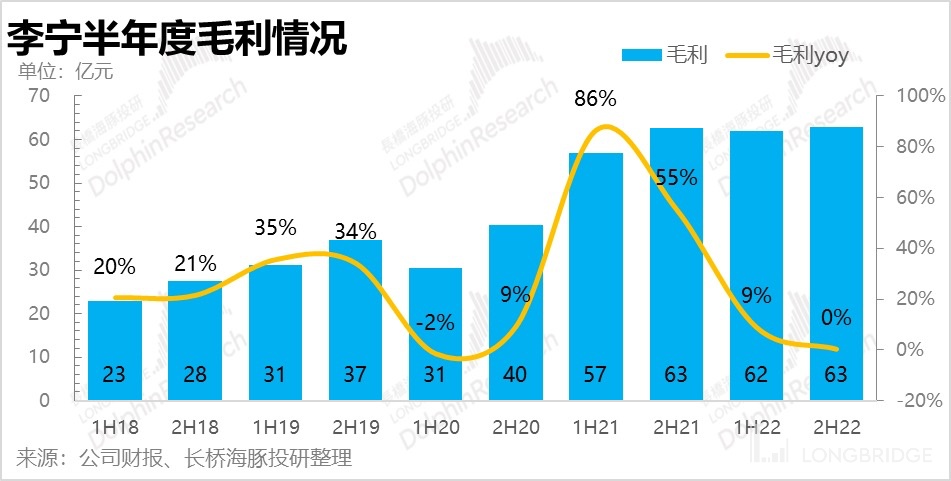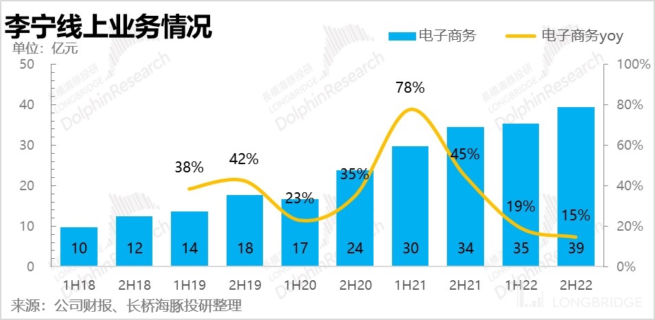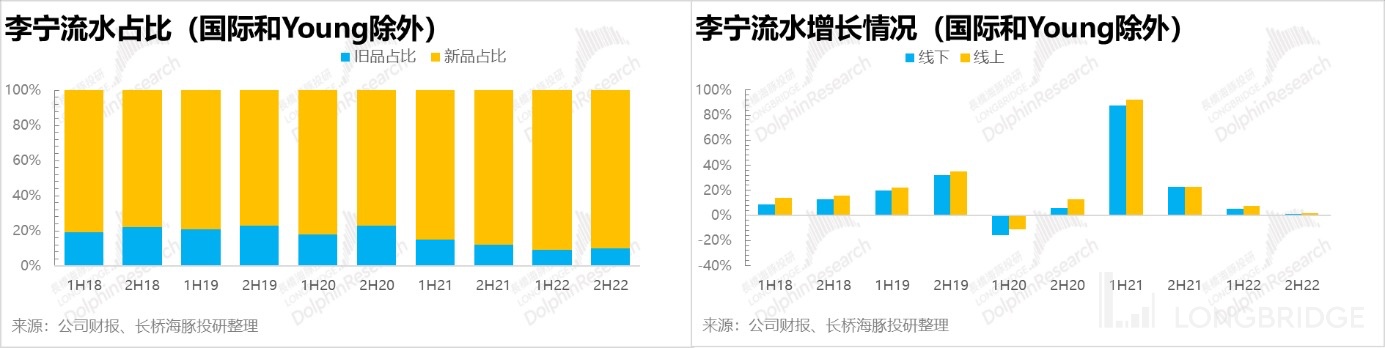 Throughout last year, Li Ning's revenue growth was only in the single digits, even disregarding the impact of the 2020 base year (the compound annual growth rate from 2021 to 2019 reached 25-30 percent), and the gap was quite obvious. Particularly in the second half of the year, there was almost no growth, and offline stores performed even more poorly due to restricted business hours.