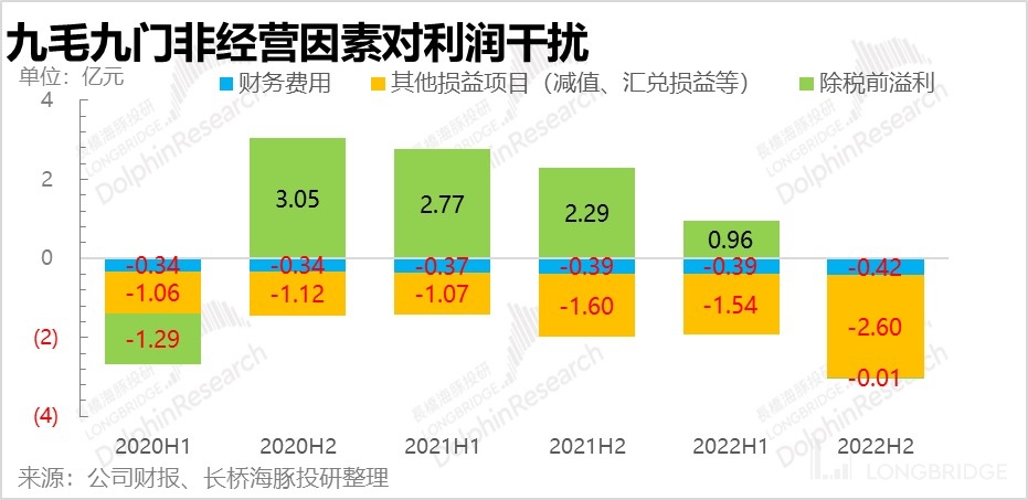 4. Expense ratio and non-operating factors interfere with net profit at the same time: In addition to the decline in profitability caused by the operating situation itself (the operating profit margin of Tai'er stores decreased from 22% to 14%), there are also non-operating factors that have a major impact on interference. Misfortunes never come singly. The exchange loss for the whole year of last year was close to 80 million, which immediately turned net profit negative.