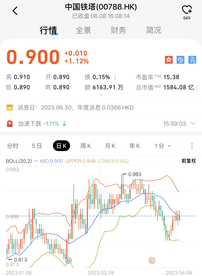 综上所述,中国中铁作为一家大型国有建筑工程和铁路基础设施建设公司,具备广阔的业务范围和丰富的经验。尽管公司面临一些潜在风险,但其亮点包括优秀的收益质量、持续增长的核心利润和较低的市净率。投资者在决策时应综合考虑这些因素,并根据自身的风险偏好做出相应的投资决策。$CHINA TOWER(00788.HK)