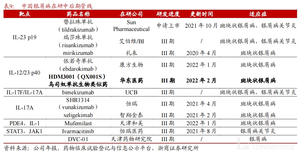 二、康方生物、华东医药、恒瑞……,角逐银屑病药物市场