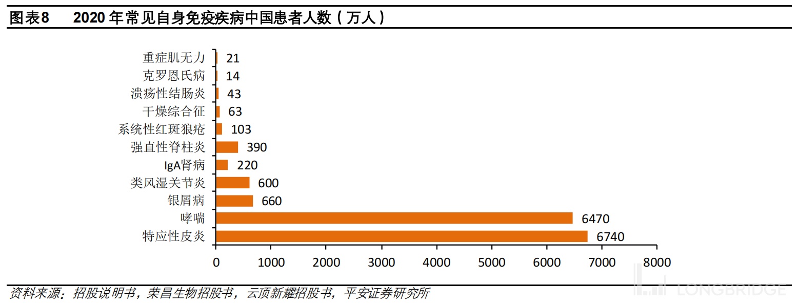 从患者数量看,美国总人口中约有 20% 是自身免疫性疾病患者,其中大部分是女性。在我国,自身免疫疾病已成为除心血管疾病和癌症以外的第三大慢性病,患者规模较为庞大,而且保持逐年增加的态势。