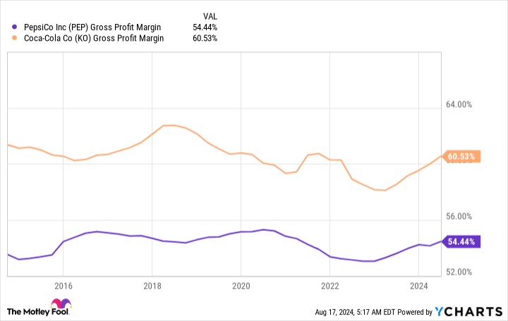 可口可乐和百事可乐可能起初看起来相似,但这两家公司采用不同的商业模式。可口可乐只销售饮料,而百事可乐通过其 Frito Lay、Quaker Foods 和 Pioneer Foods 部门还销售包装食品。可口可乐对饮料的专注使其能够产生比百事可乐更高的毛利润。
