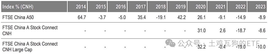 2)富时中国 A50 指数,年度收益率–总收益