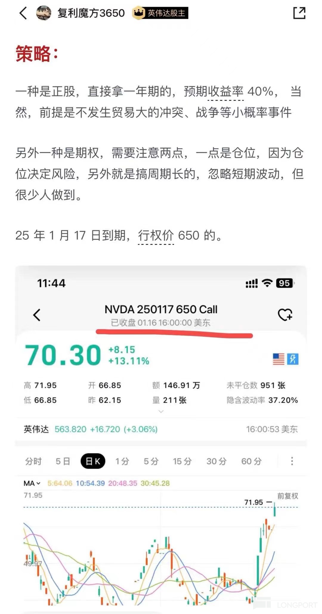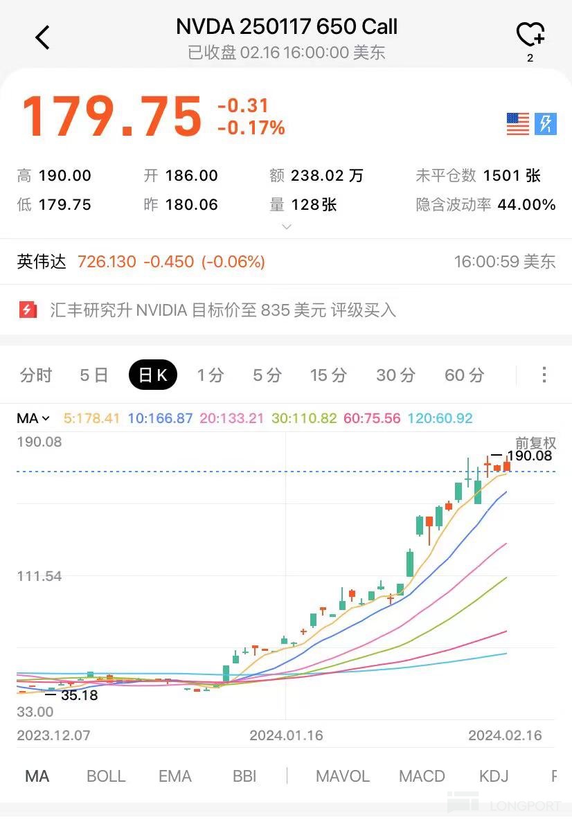 这个期权现在 170 了