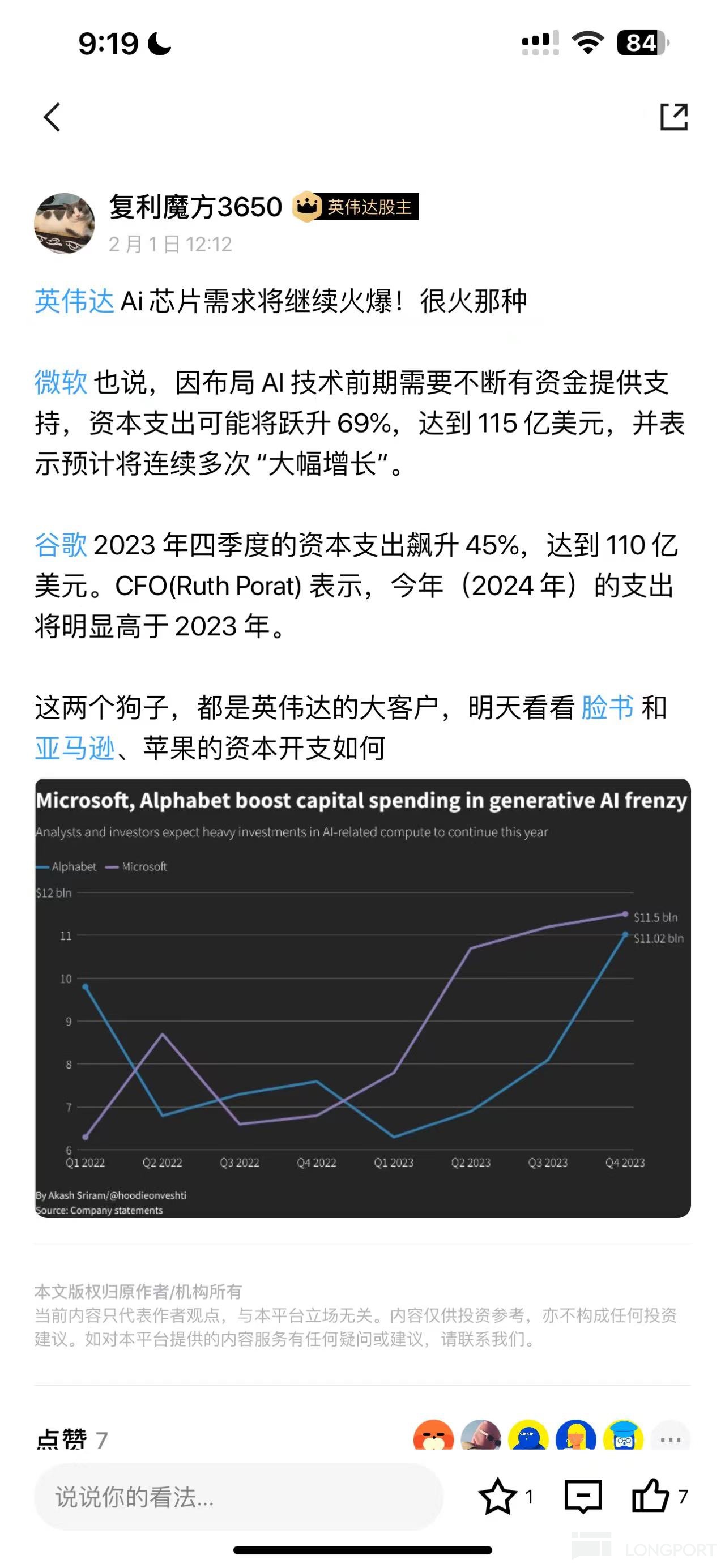 微软是飙升 69%,谷歌飙升 45%,见之前的帖子